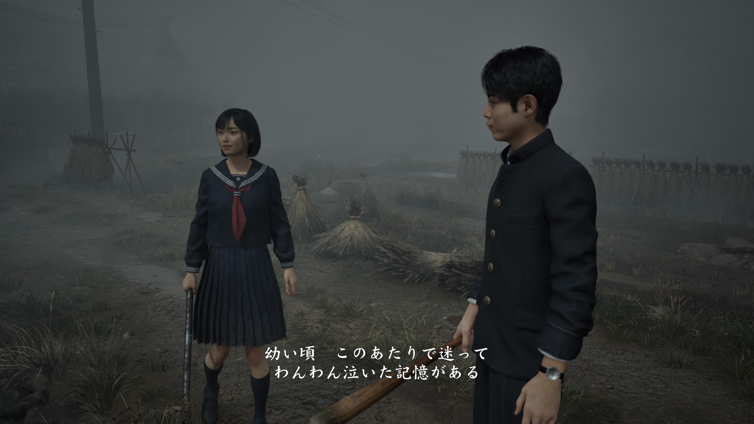 幼馴染と思い出話に花を咲かせるも、手にぶら下げている獲物が物騒過ぎるのと霧に包まれた化物が徘徊する町でというロケーション故に甘酸っぱい青春物語の気配は微塵も漂ってこない。