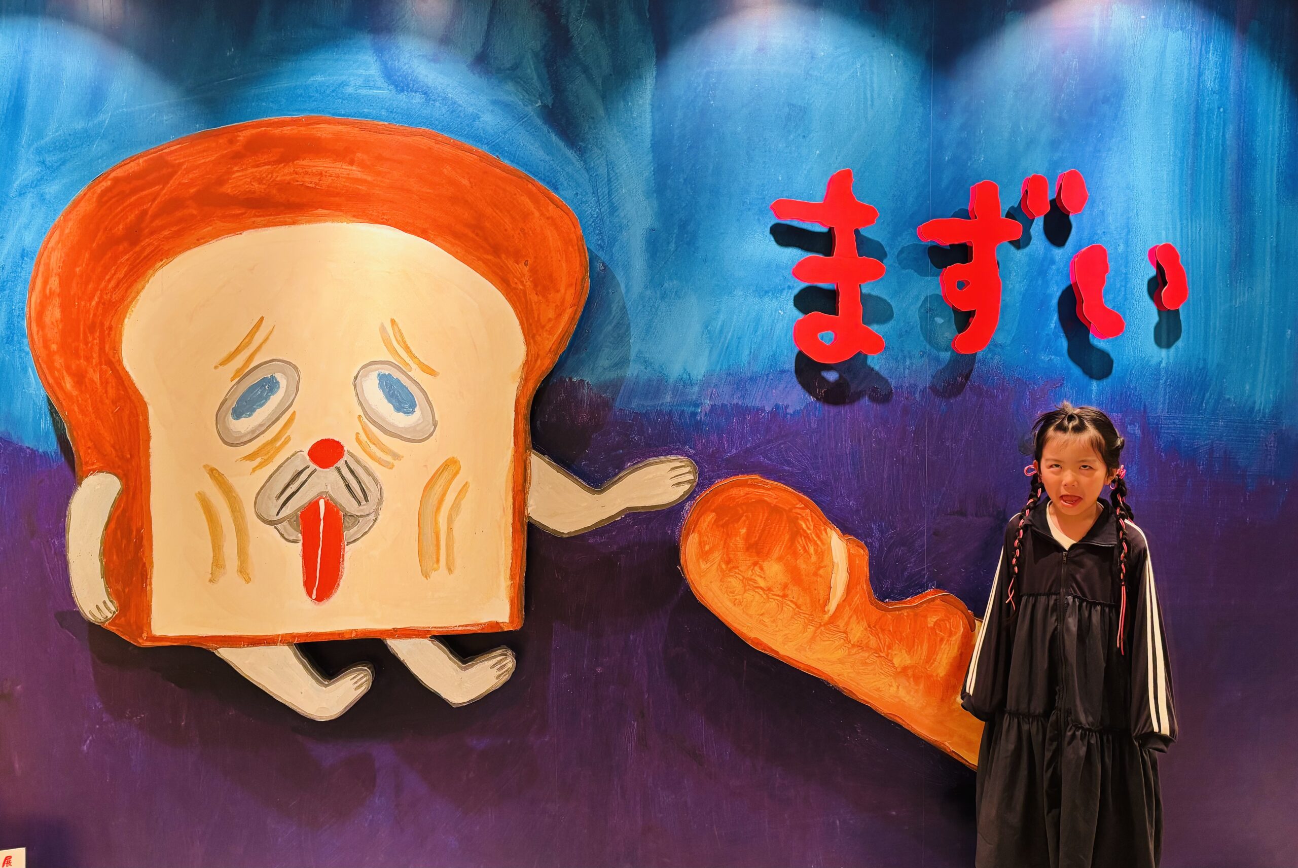 「まずい」のシーンを再現したフォトスペースでは「まずい」の文字が飛び出して立体的になっていた。
