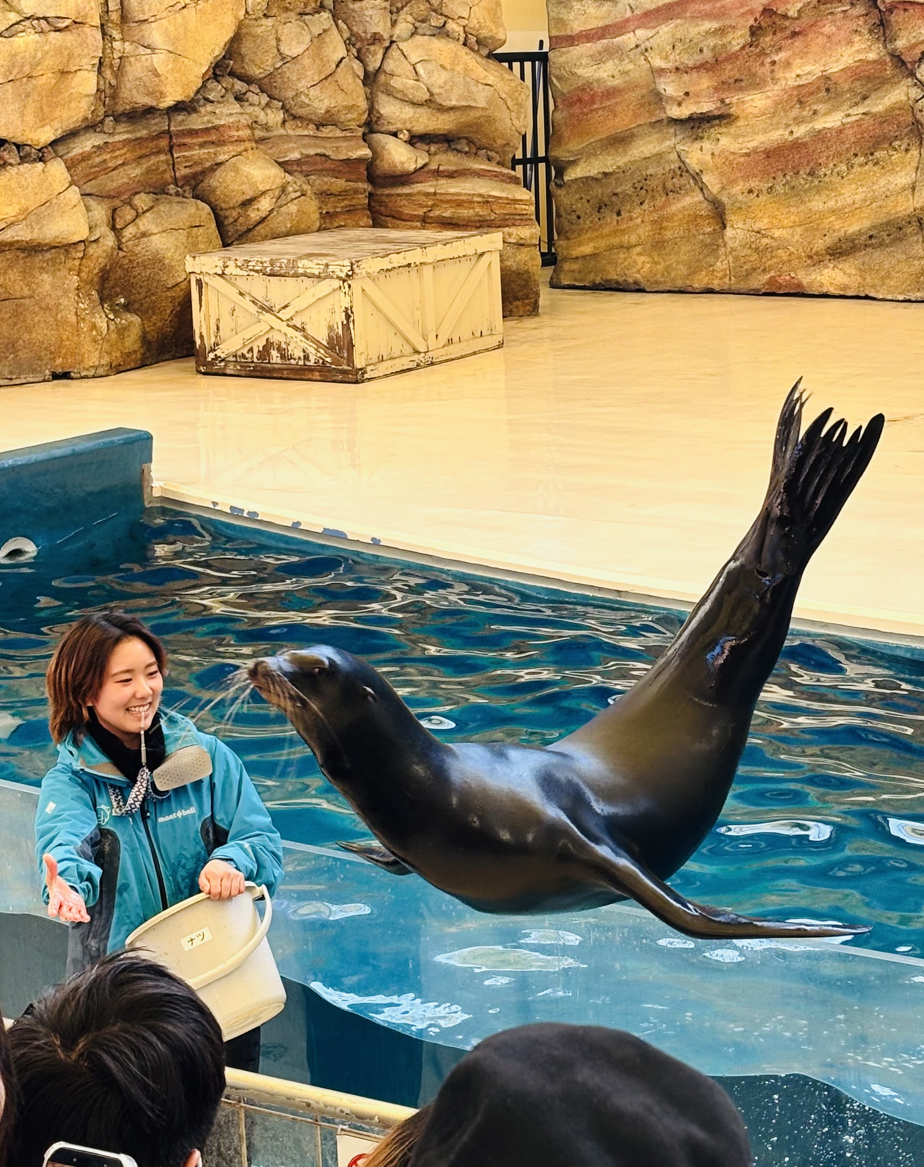 若いお父さんが結構な距離から投げていたのだが見事にキャッチ!アシカも凄いけれどもちゃんと届かせるお父さんも凄いなと思ったり等した。