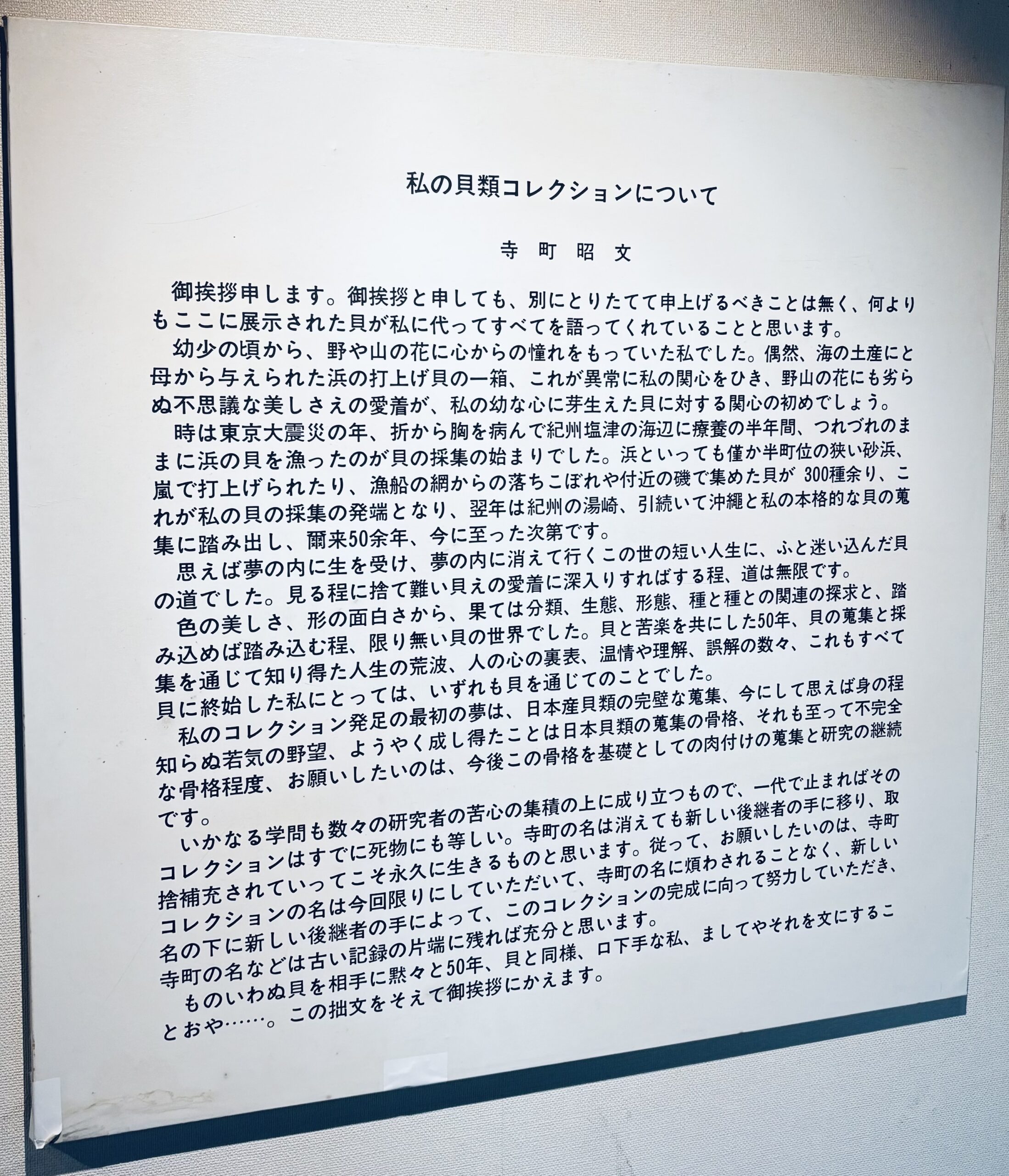 国内有数の研究者にして貝コレクター(との事)寺町昭文氏による寺町コレクションの挨拶文。