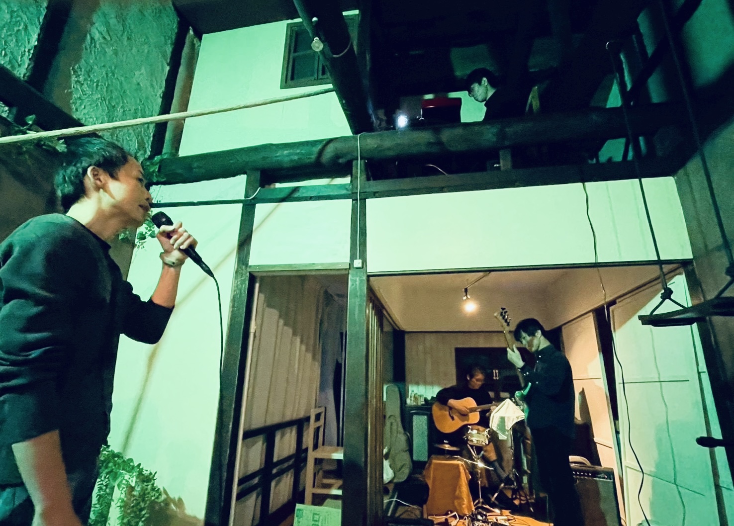 舞台美術の中での演奏、かつ音響機材もほぼほぼ全て持ち込んで古民家での演奏である。周囲は民家なので音量的にも配慮しなければならないし(爆音で演奏するぞ!という公演でもなかろうから特に制約をネガティヴに感じる事もなかったけれども)、音響的にどのような状況になるのか全く想像がつかなかったので舞台美術をまだ組んでいる最中ではあったけれども、機材を持ち込んで音を出させて頂いた次第である。
