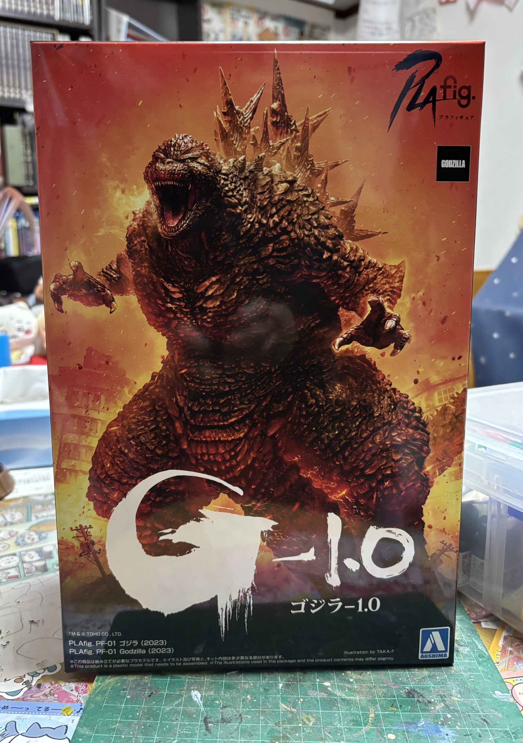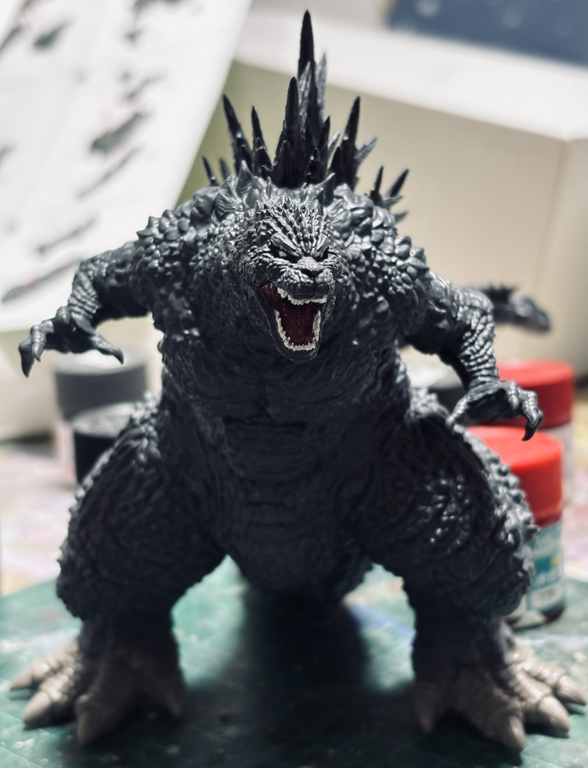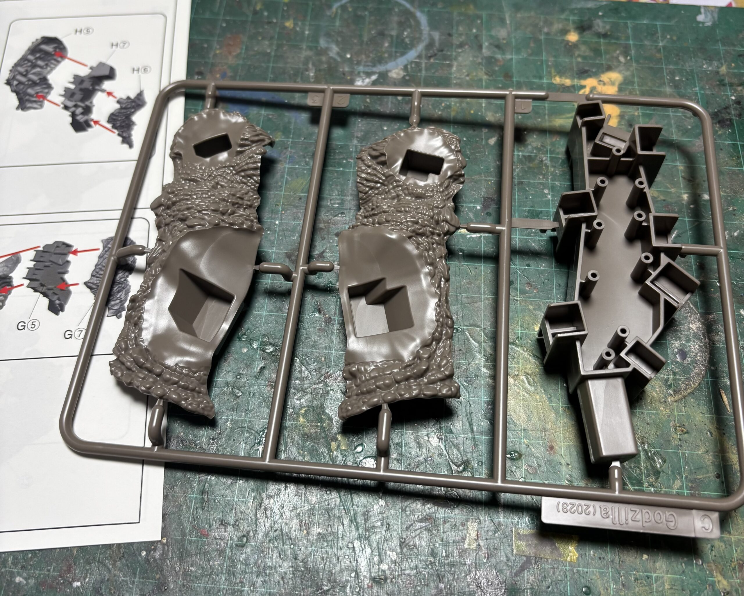 母の3回忌の法要後に実家近くの模型店に足を運び「こんなキットあったんだァ!」と30%オフという店頭価格にご縁を感じて購入した青島文化教材社『ゴジラ(2023)』を早速作る。
