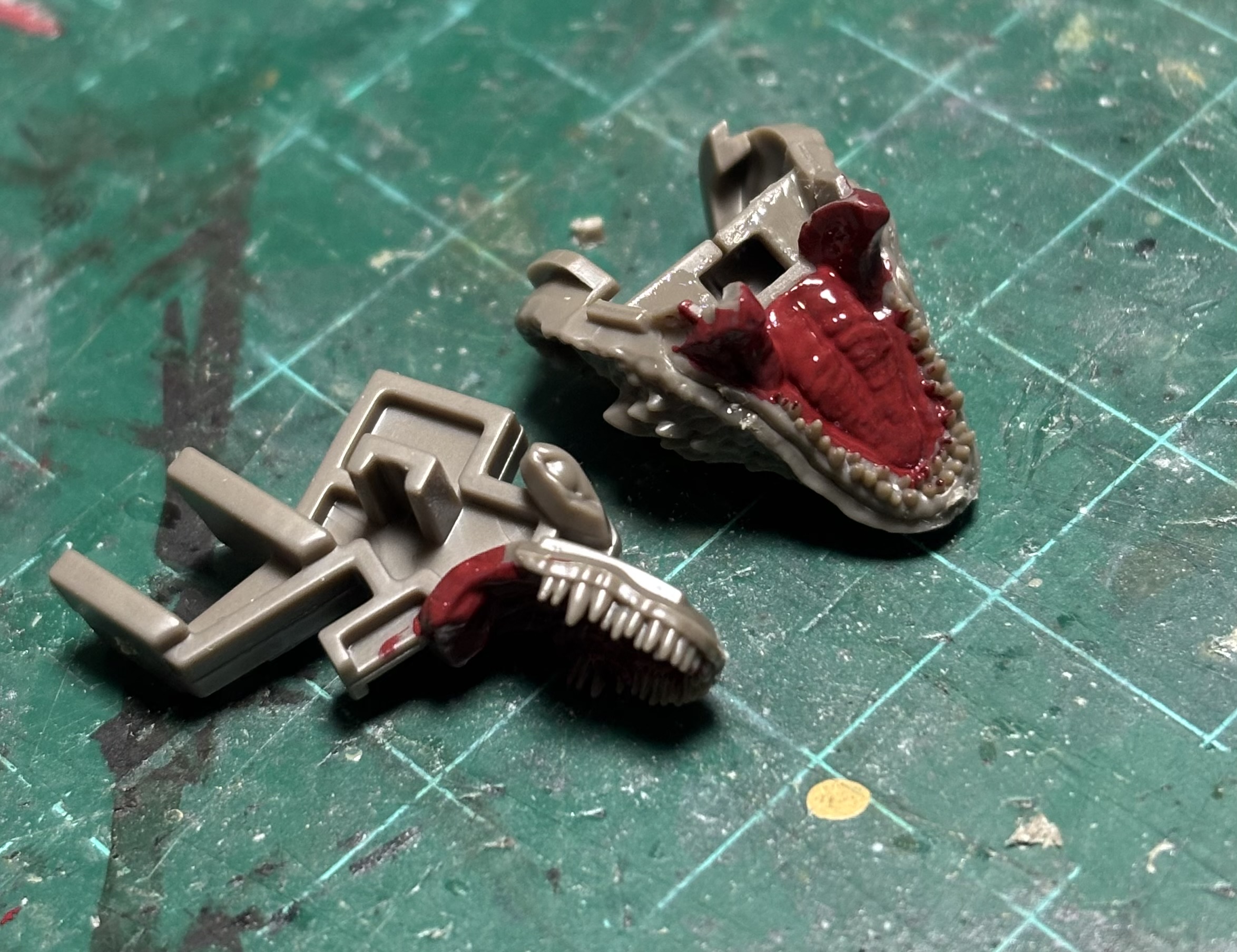組み上げてしまいたい気持ちは山々だったけれども、口の中なんて絶対に後で塗装するのが難しいので今のうちにやってしまう事にする。
