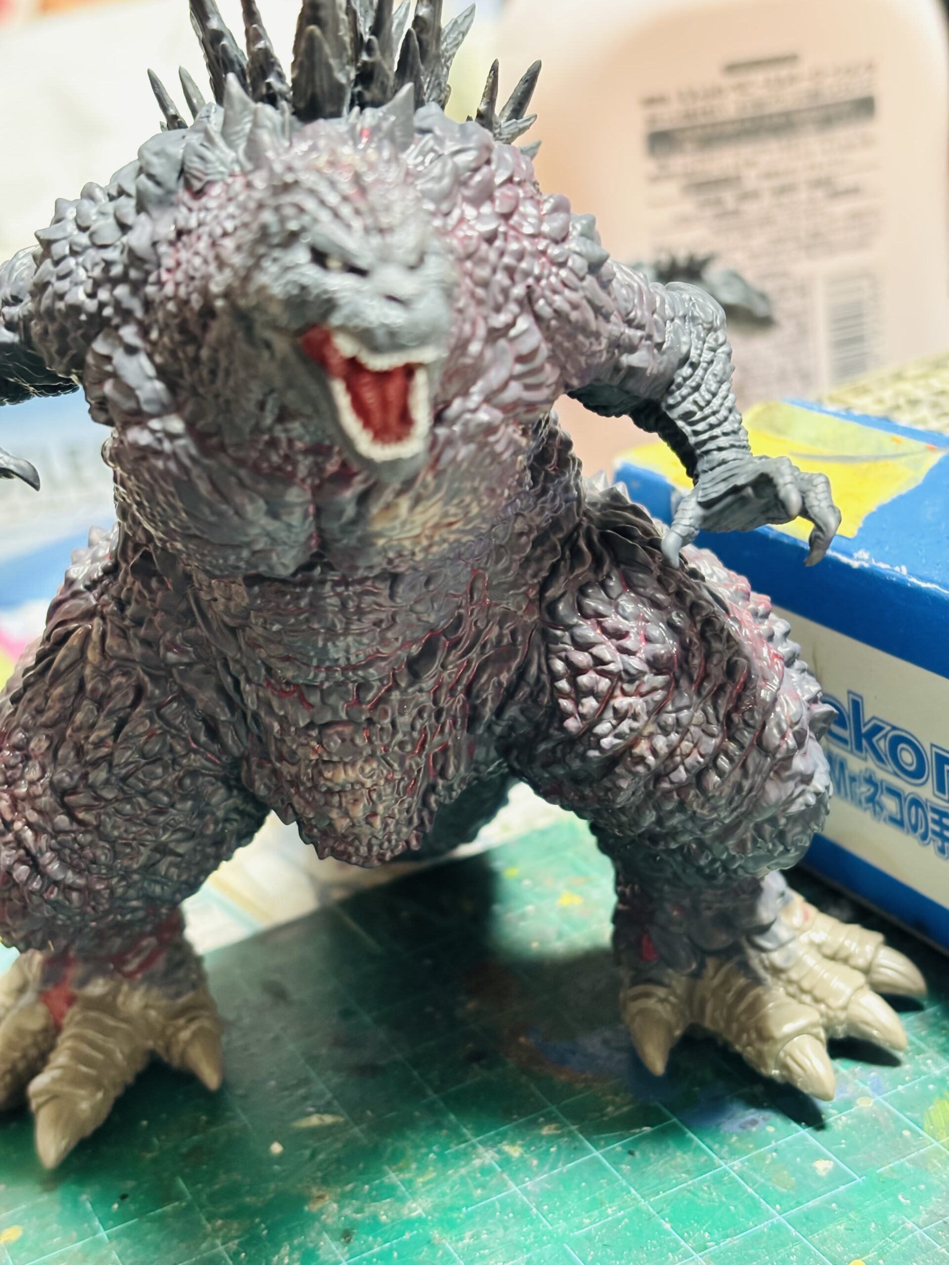 ゴジラ(2023)ってダメージを負って出血しているイメージと再生した傷だらけのイメージがあるのでそこを少しでも描きたいなという気持ちはある。