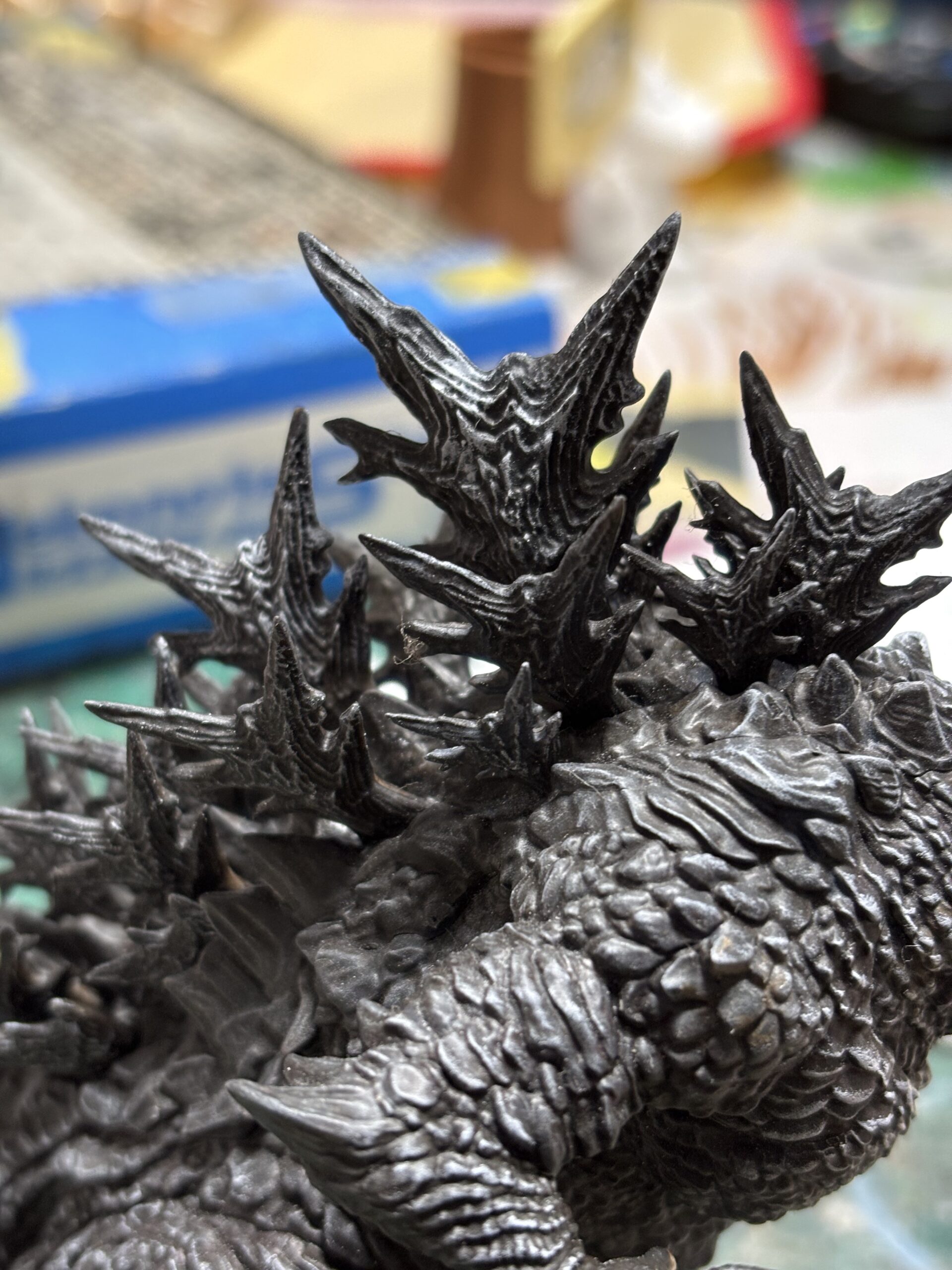 マシーネンクリーガーばかり作ってきた僕が果たしてゴジラを格好良く組み上げて塗装する事が出来るのか自信がなかったけれども、キットのクオリティの高さに大いに助けられいよいよ完成目前。