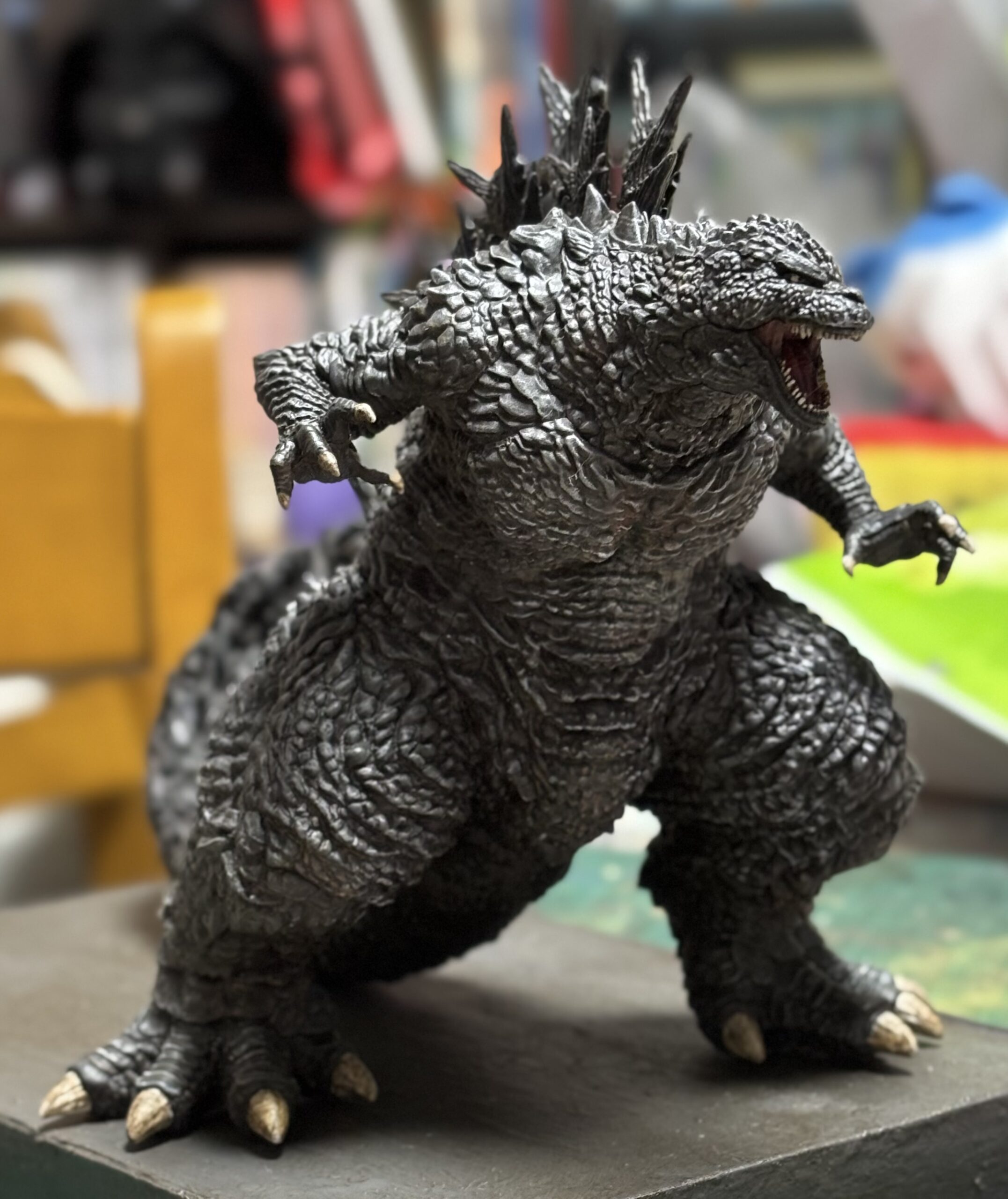 心配していた塗装もジャーマングレーに色々塗り重ねる事でゴジラらしいゴジラになったと思う。いややっぱりドライブラシの感動が大きい。もう今すぐまたやりたいもんな、ドライブラシ。
