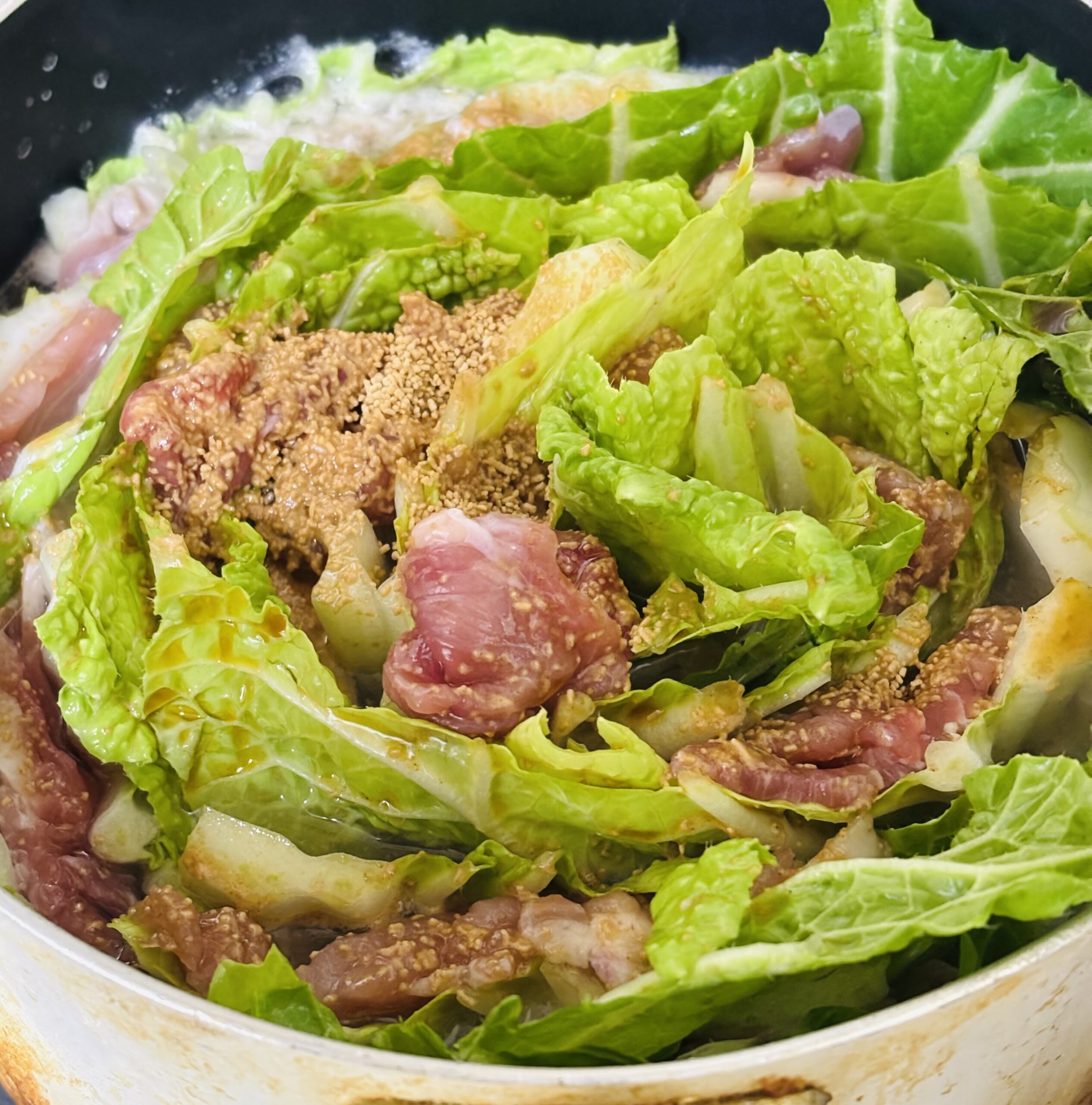 冷蔵庫の中には豚バラ肉があったので、急遽白菜と豚肉のミルフィーユ鍋に路線変更。