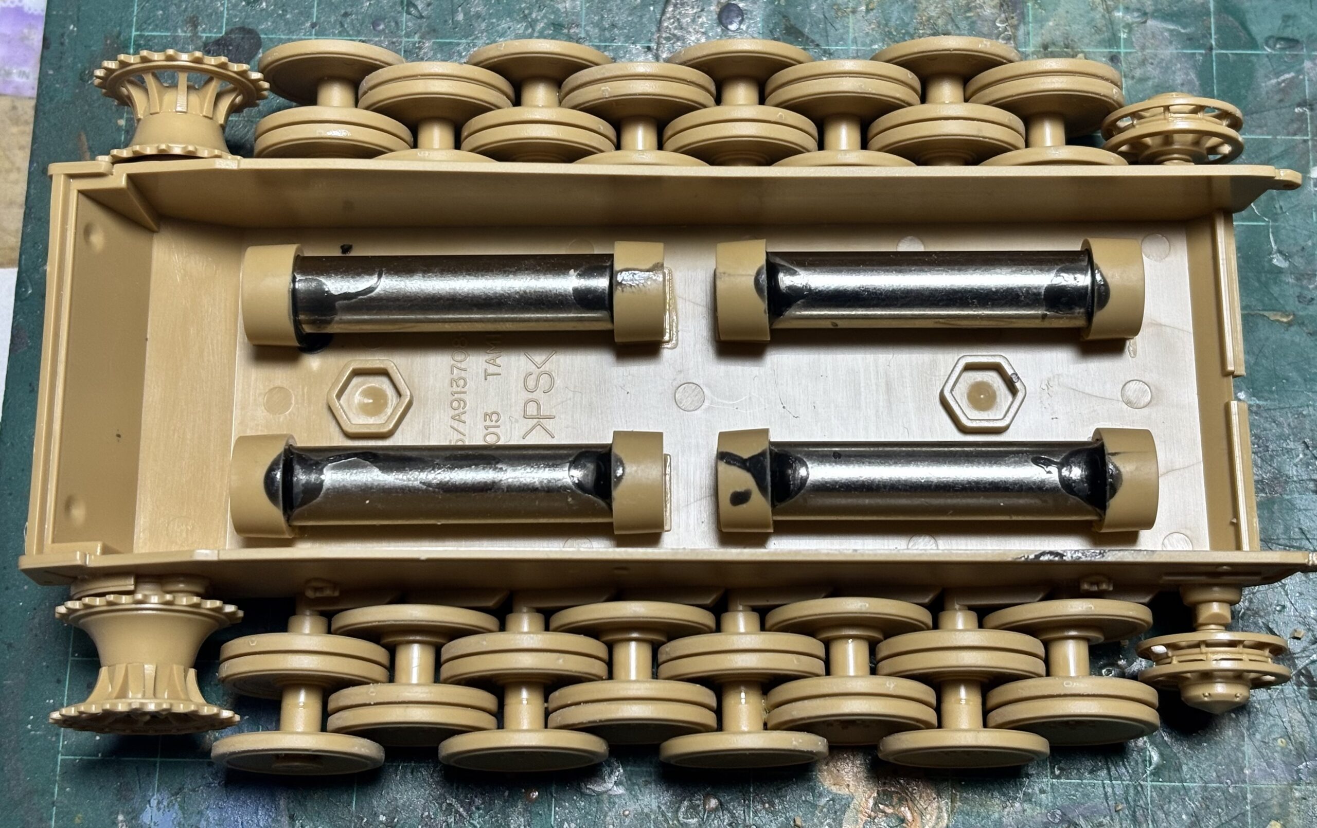 組み上げるところまでいくかなと思っていたけれども、転輪の数の多さとそれに伴う工程の多さが想定外。