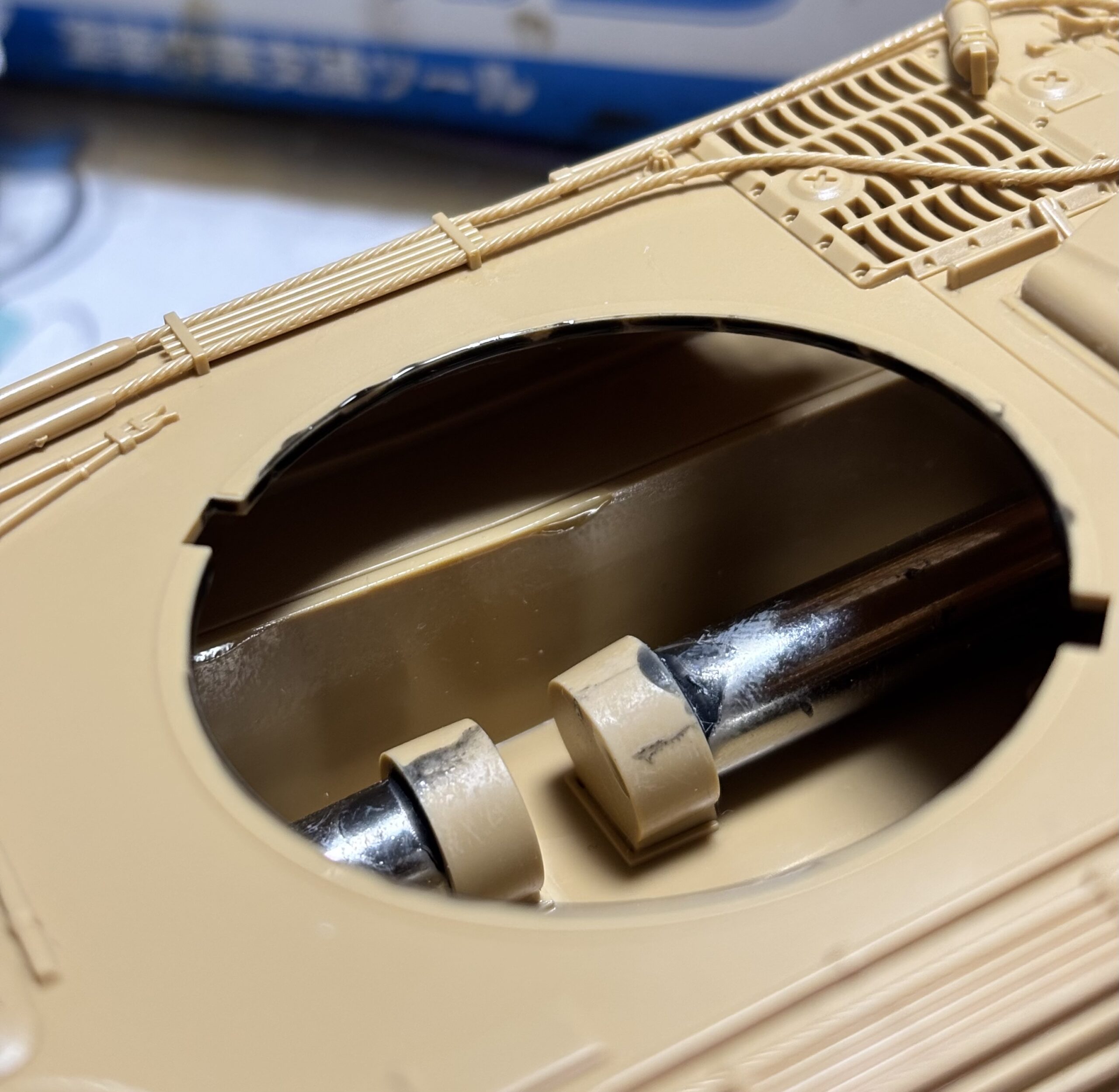 砲塔部を受ける車体側の穴が微妙にガバガバなのか、砲塔が滑らかに動き過ぎるのが気になったので修正。