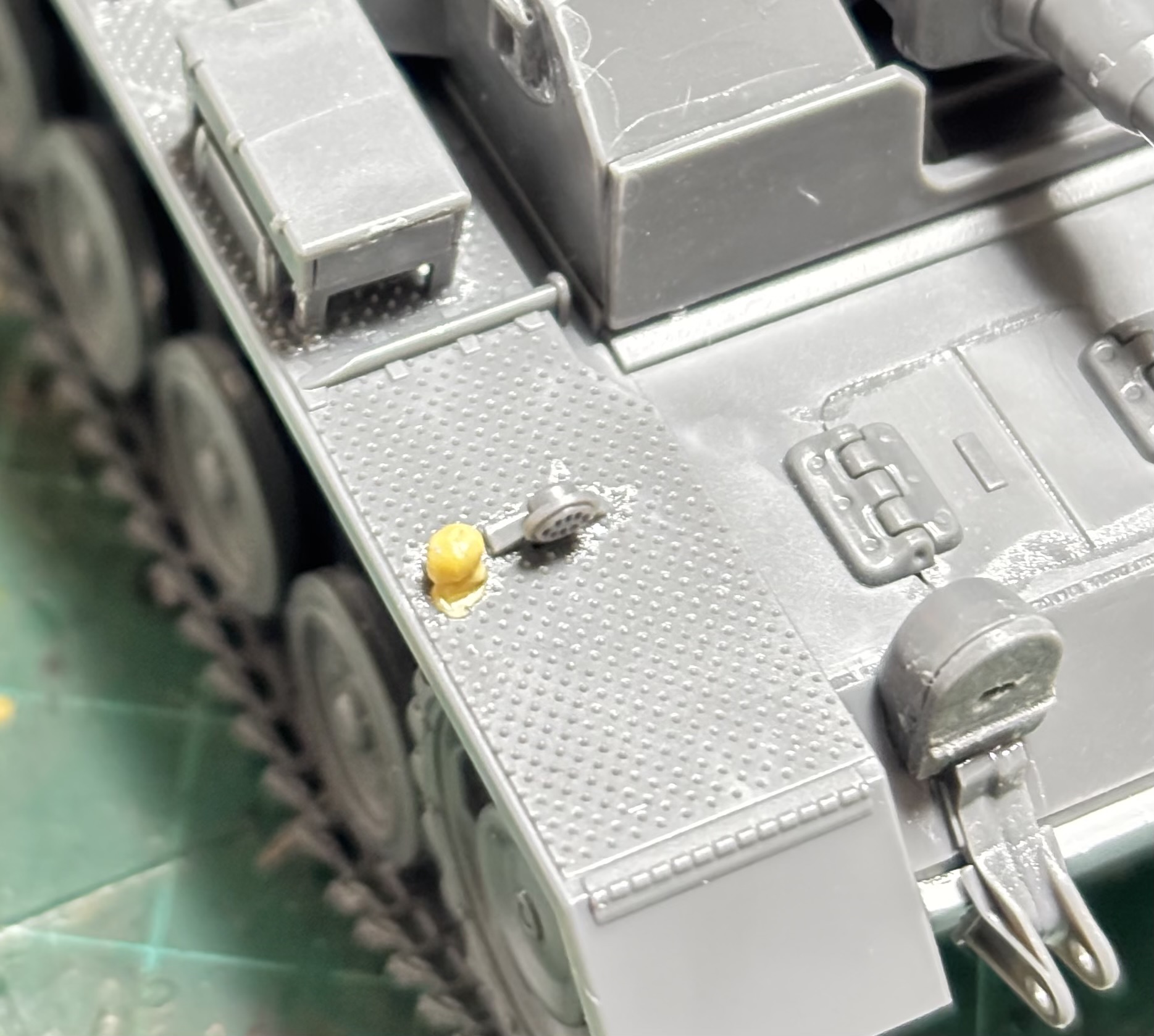 二度と再会する事も叶わぬだろうと思われた。これくらいの小さいパーツだったら何とか誤魔化せないか、と一念発起してパテでそれらしいものを設える事とした。