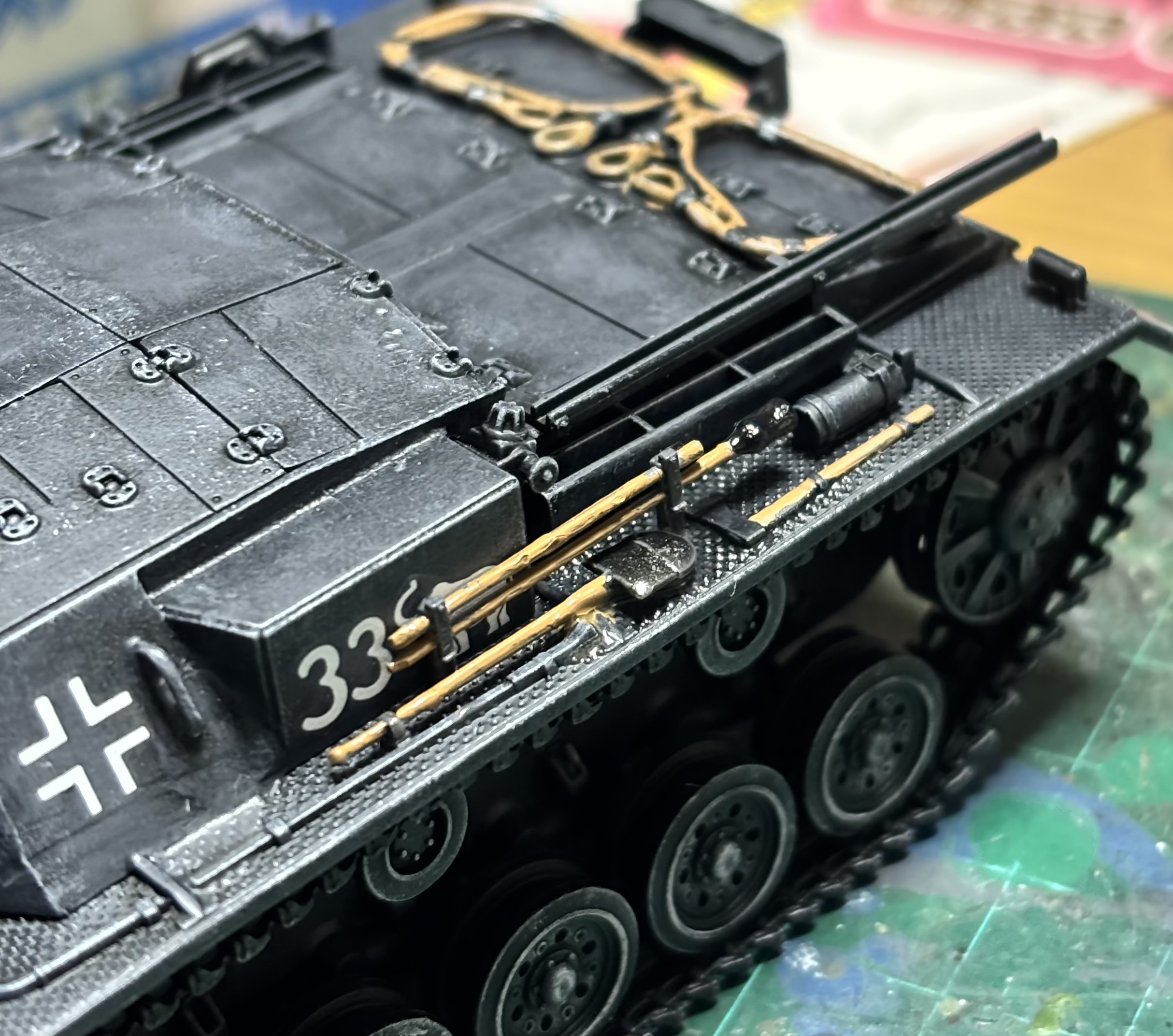 さあ、今日もドイツⅢ号突撃砲B型の製作、やっていきましょう。