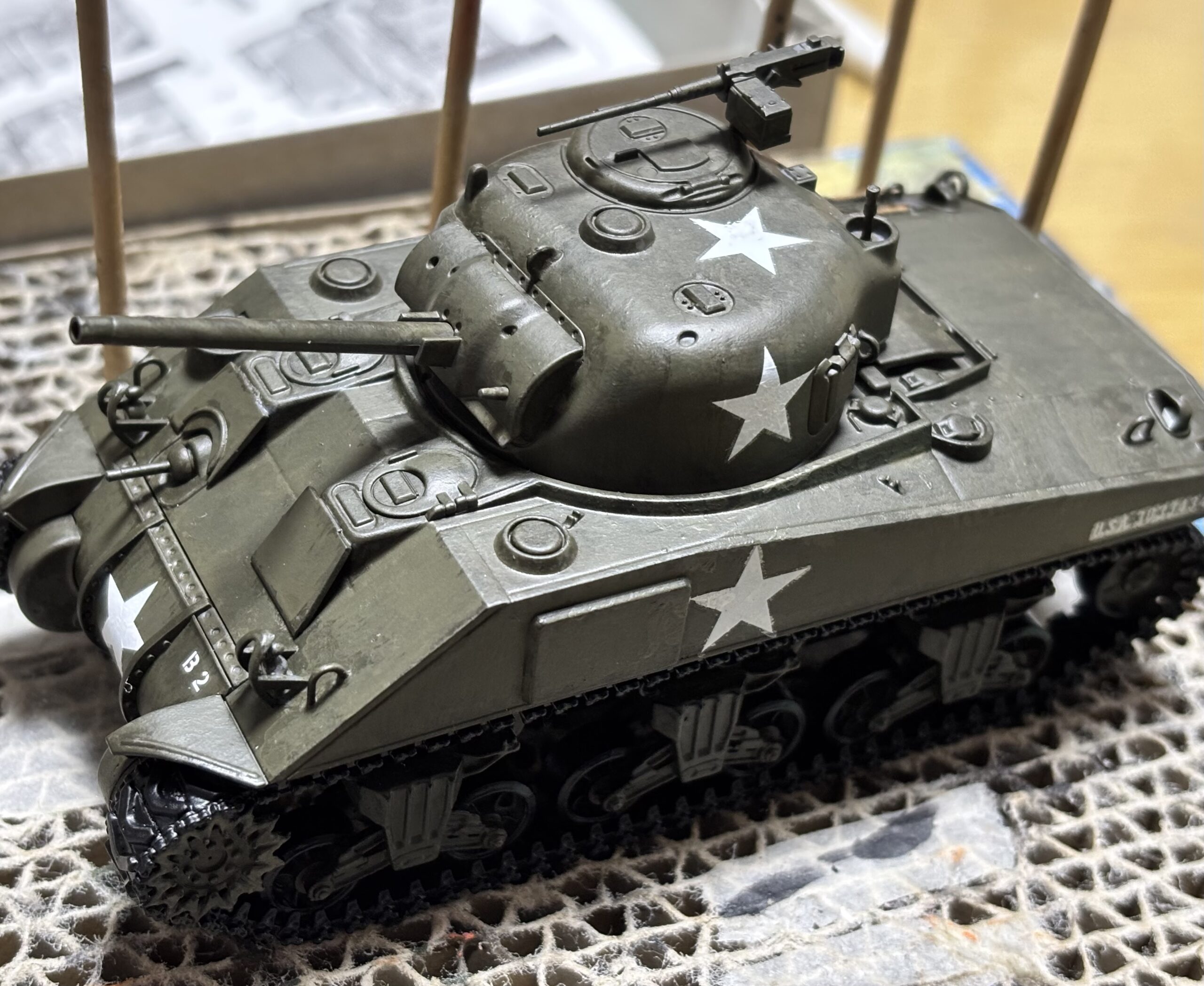 しかしザッとオリーブドラブで塗装して、デカールを数点貼っただけでここまで格好良くなるのかTAMIYAのM4 シャーマン戦車。