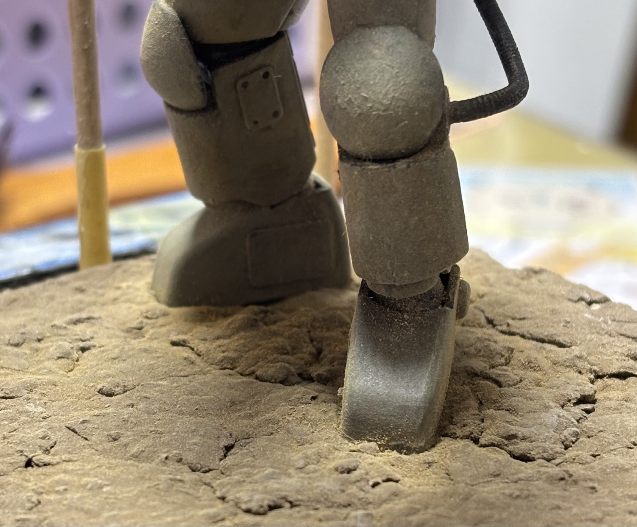 タミヤのウェザリングマスターで足元に砂埃の汚れを擦りつける。