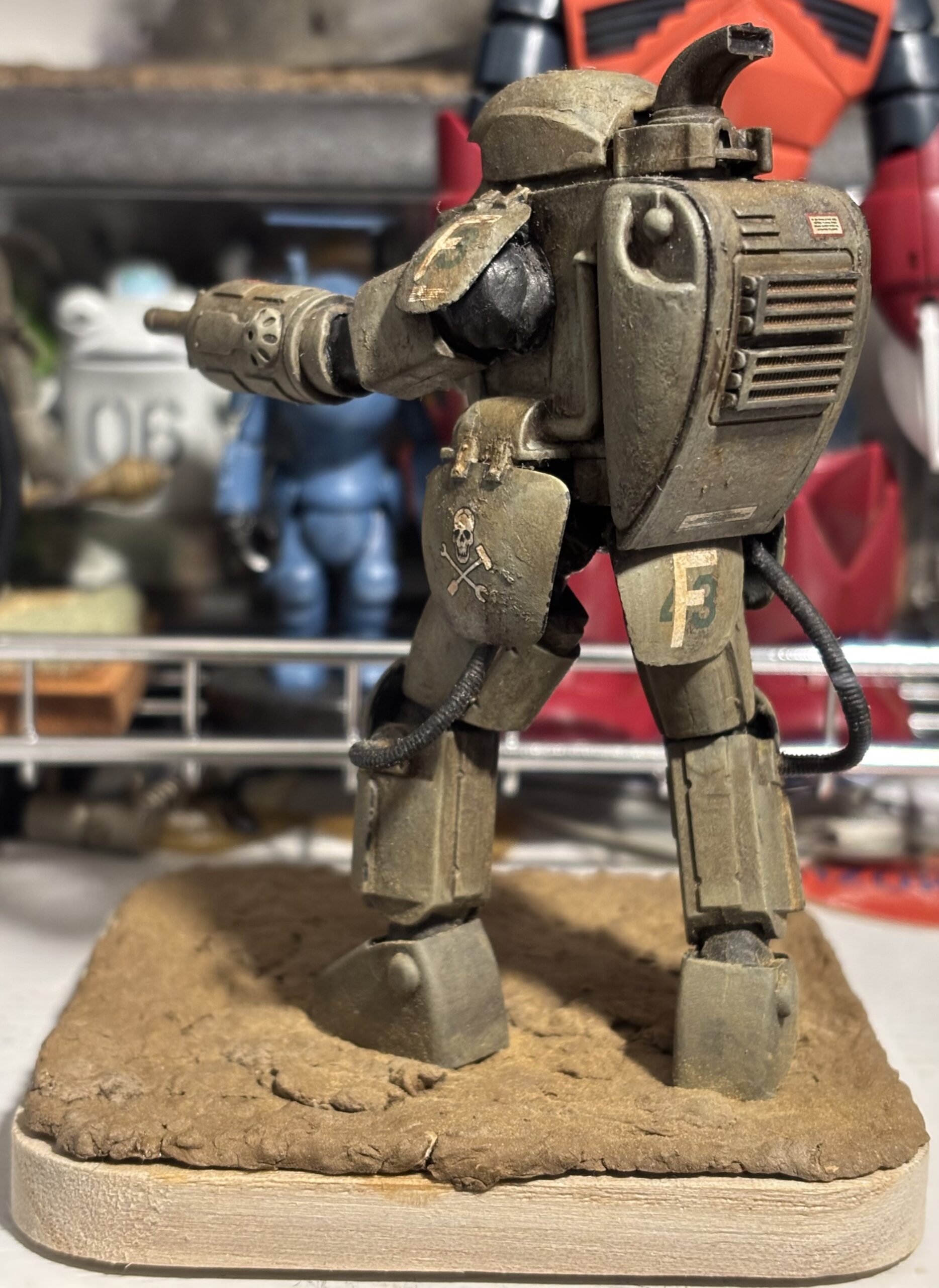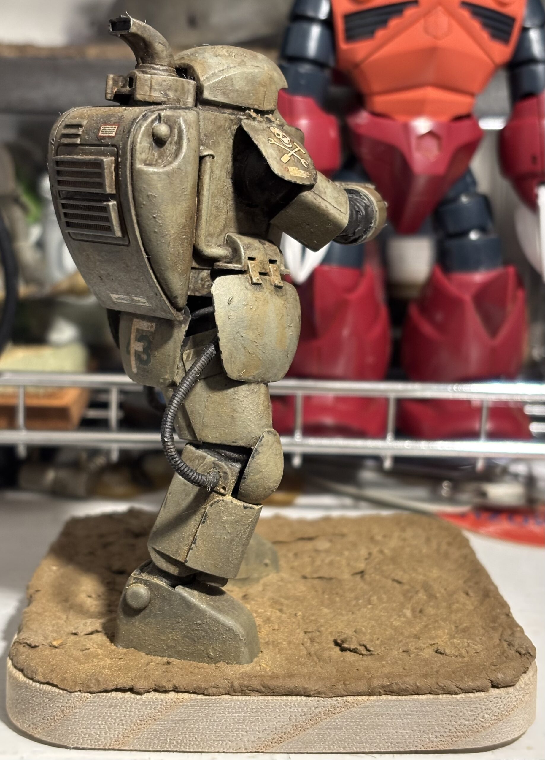 今回はウェザリングの仕上がりが気に入っている。背面、肩アーマーや腰アーマーの汚れが垂れた感じが特にお気に入り。