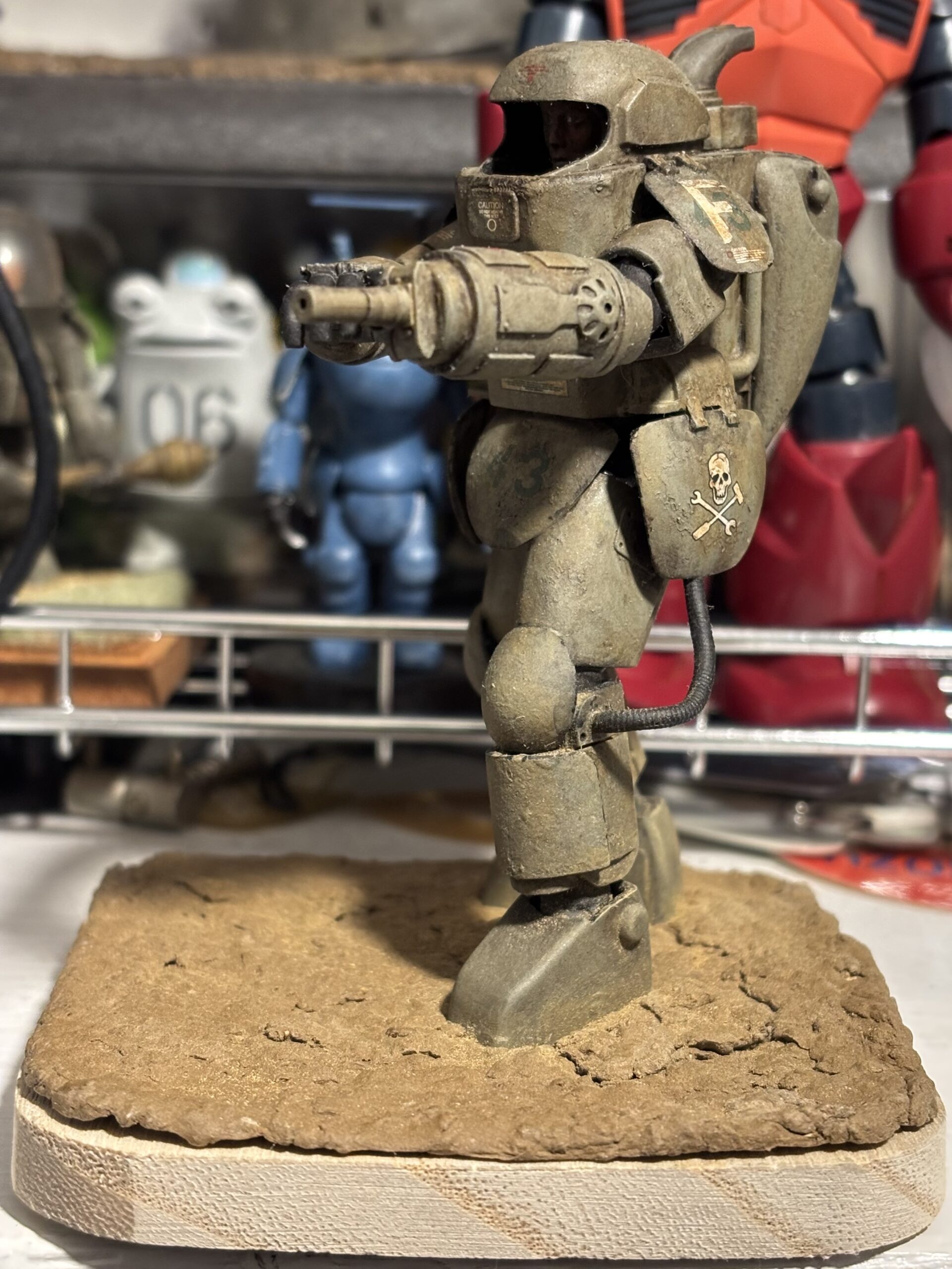 今回はウェザリングの仕上がりが気に入っている。背面、肩アーマーや腰アーマーの汚れが垂れた感じが特にお気に入り。