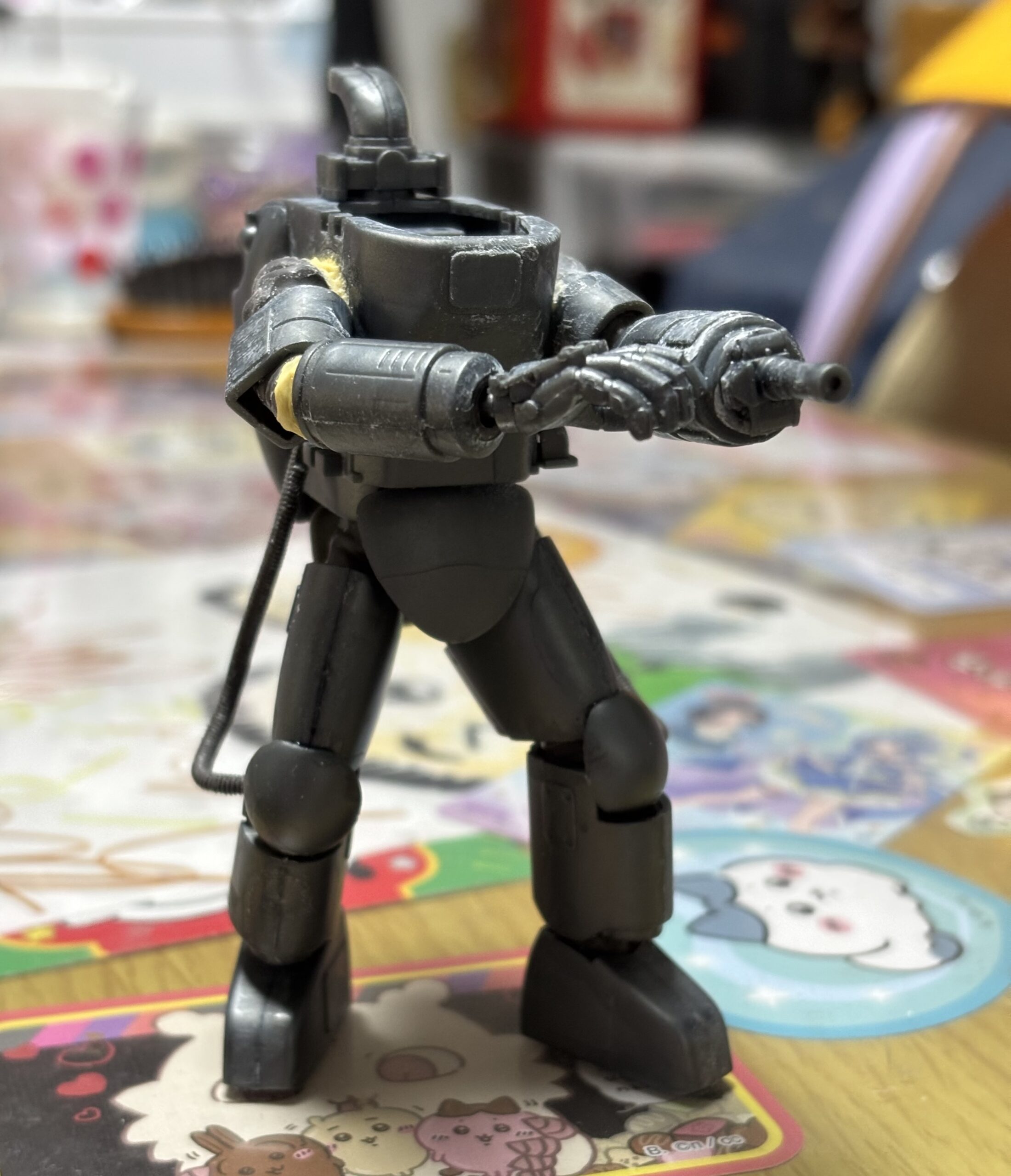どうしても左腕を持ち上げた姿勢だと先に製作したMk.Ⅰとポーズが被ってしまいそうだったけれども右腕を左腕のレーザー砲に添えるように突き出させた事で差異を作り出そうと試みた。