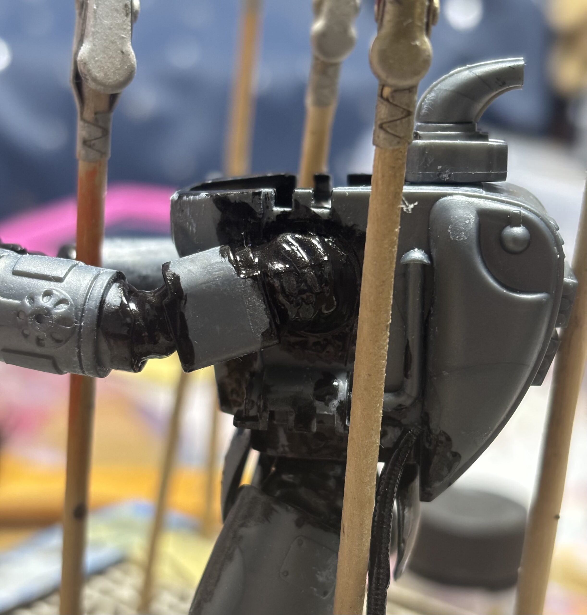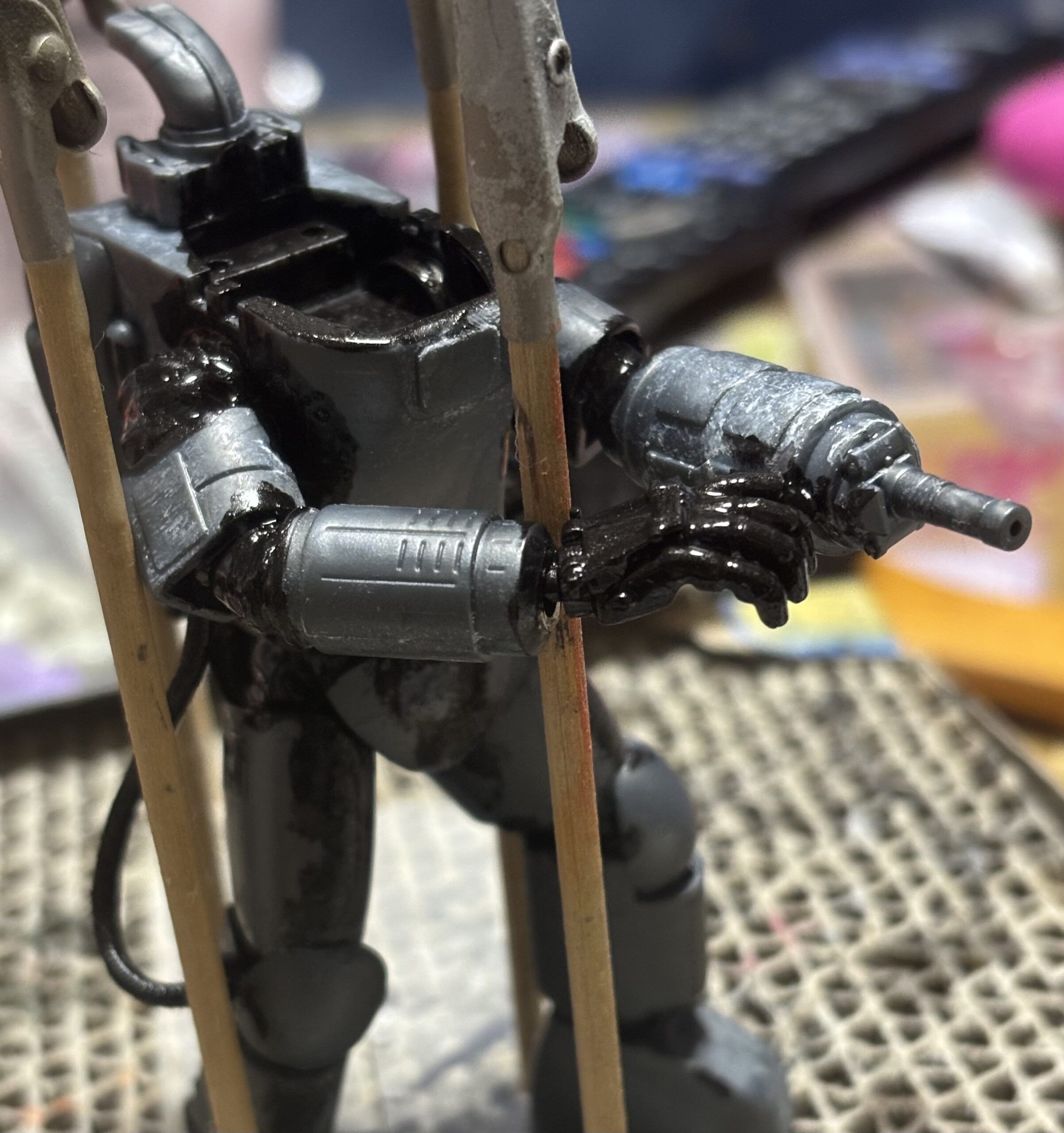 マニピュレーター部分と関節部分、あとは陰になりそうな部分を黒系統の塗料でガッとおおまかに塗っていく。
